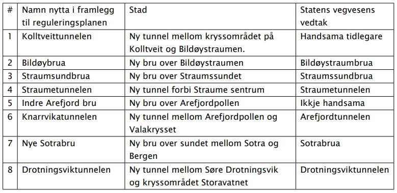 Statens vegvesen har teke omsyn til uttalen frå Øygarden kommune når det gjeld namn på ny tunnel mellom Arefjordpollen og Valakrysset. Statens vegvesen føreslo opphavleg å kalla tunnelen for Knarrvikatunnelen. Her peika kommunen på at ingen delar av tunnelen ligg på Knarrvika, men fullt ut på garden Arefjord. Difor vert dette namnet endra til Arefjordtunnelen slik kommunen har føreslått.