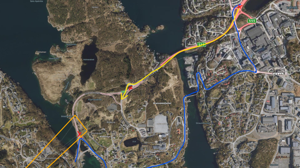 Stengjer riksveg 555 på Bildøyna natt til fredag Natt til fredag 10. oktober vert riksveg 555 på Bildøyna stengd mellom klokka 00.00 og 05.00. Omkøyring er skilta. Publisert 07.10.2025 kl. 13.54