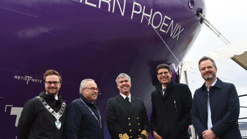Skipsdåp for framtida Litt før klokka 12 på onsdag slo sjampanjeflaska mot båtsida på CO2-tankaren Northern Phoenix. Dette er det tredje skipet i Northern Lights-flåten. Ma... Publisert 08.04.2026 kl. 15.28