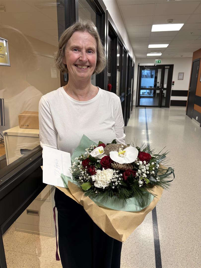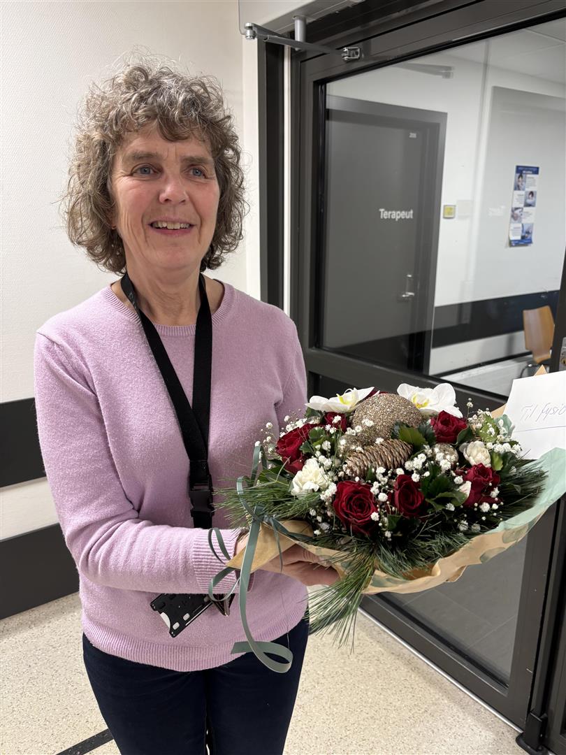 Fysioterapeutane ved helse, meistring og rehabilitering fekk overlevert ein nydeleg bordoppsats som takk for at dei stiller med fysioterapeut til balansetreninga kvar tysdag, noko dei har gjort fast i 11 år. Einingsleiar og fysioterapeut Liv Møen og fysioterapeut Unn Telle vart veldig glade for blomen, og helsa Aktiv+ og takka for det gode samarbeidet med Aktiv+. Blomen står på lunsjrommet til glede for alle.