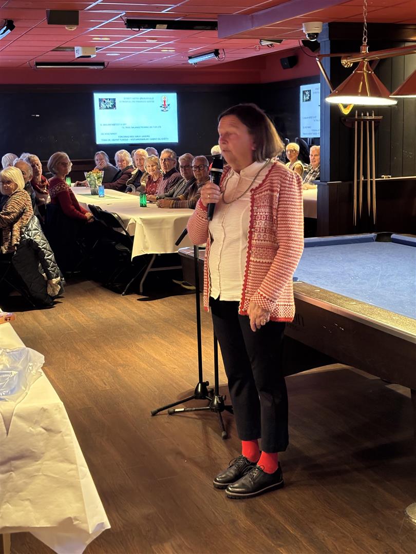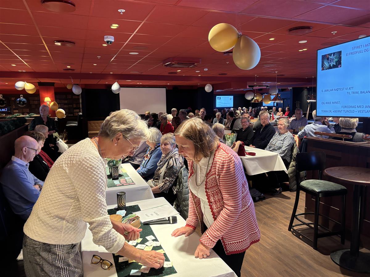 Frå julefeiringa til Aktiv+Styreleiar Eli Bergsvik ønskte velkomen og takka alle som møtte opp for innleverte premiar og for alle som har bidratt til å få i stand juleavslutninga. Styret i Aktiv+ er godt vande med å organisera mange menneske. I tur og orden fekk alle forsyna seg med kringle frå Arbeids- og Aktivitetssenteret på Skogsvåg, og sjølvsagt kaffi og småkaker. Det var ikkje få lodd som vart selde denne dagen, men nestleiar Irene Evensen leia loddtrekning og premieutdeling raskt og effektivt.