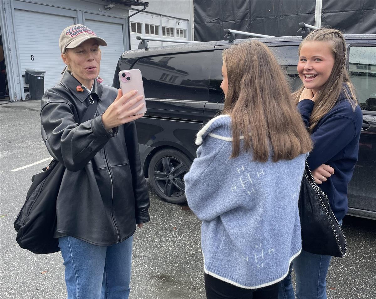 Det var stas for Amalie (til høgre) å møta Gabrielle. Til venstre; venninna Maria.