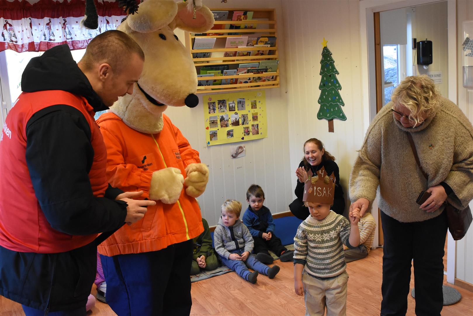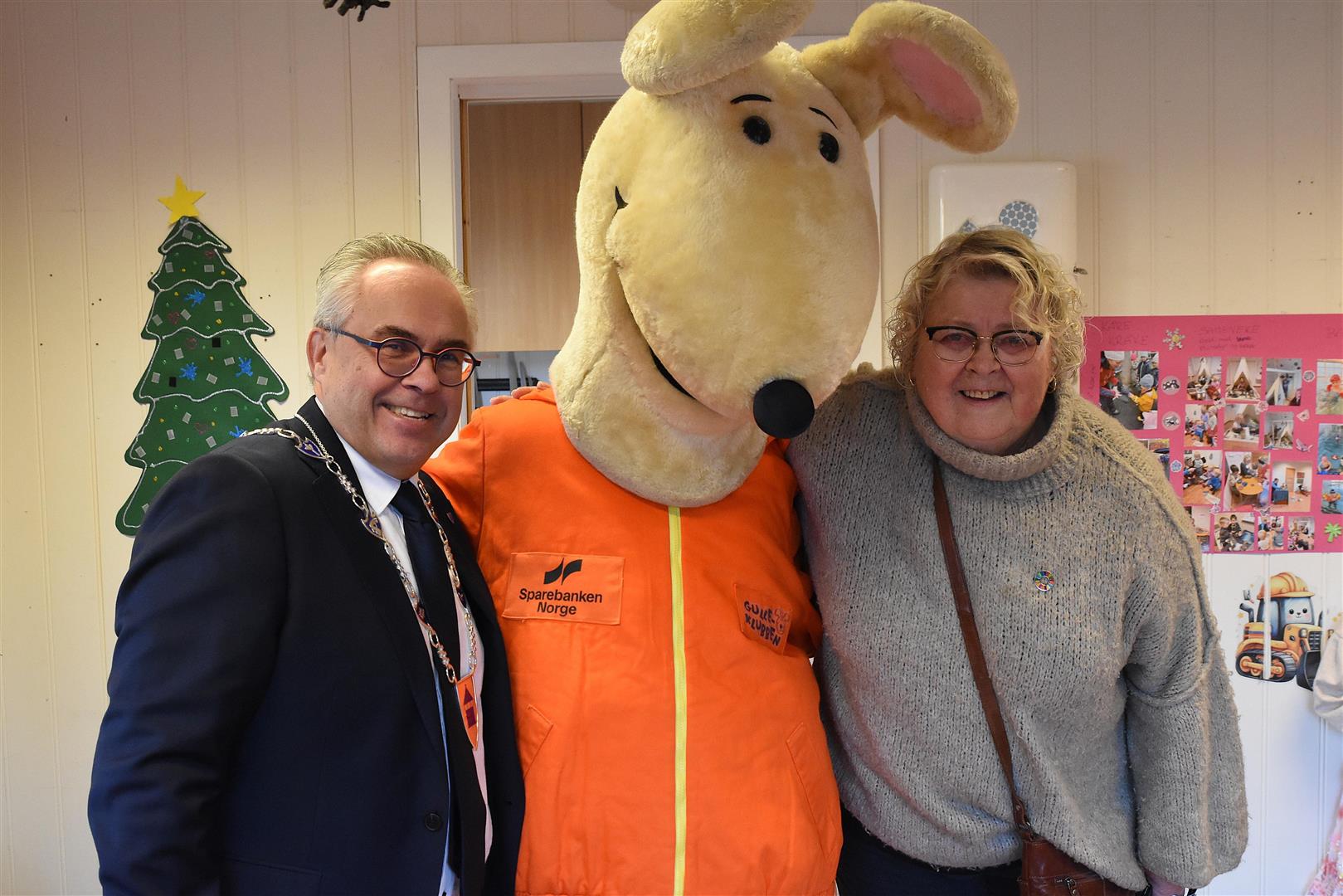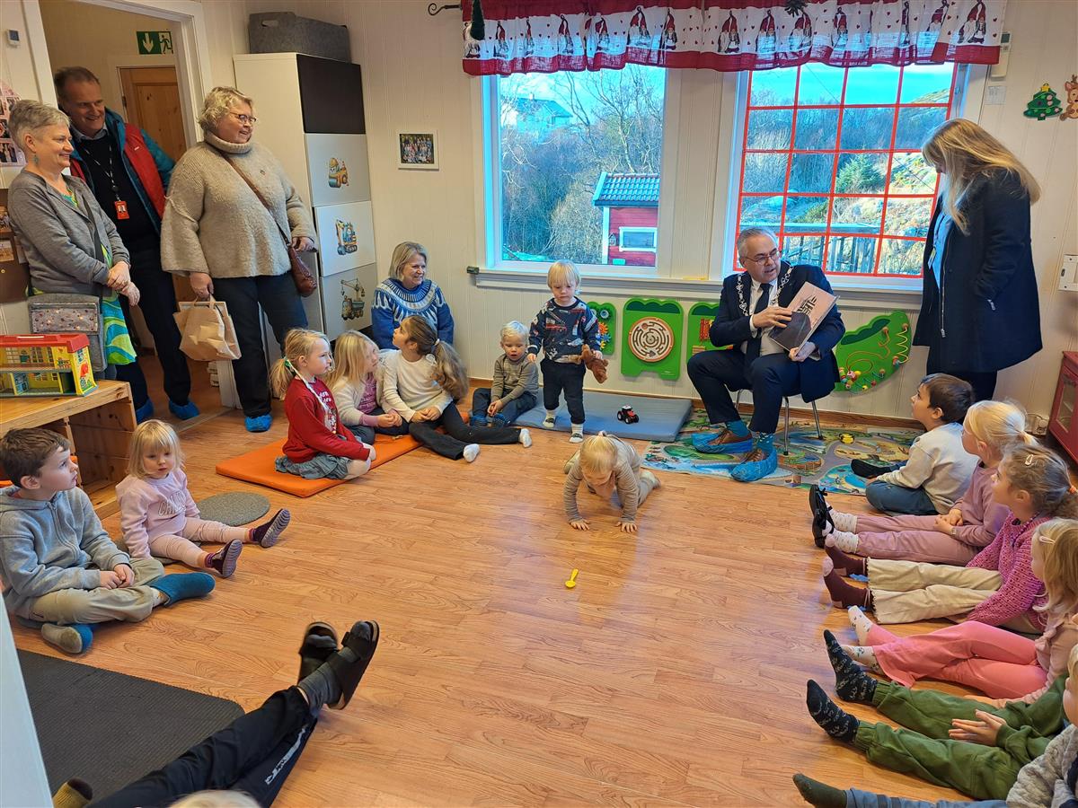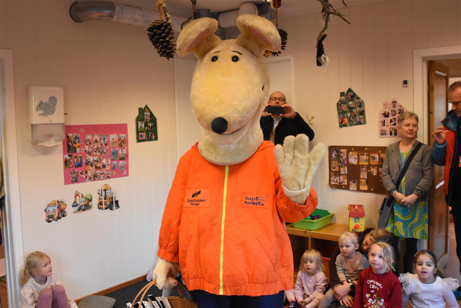 Ordførar Tom Georg Indrevik prøvde seg som pedagog og litteraturformidlar.Om ikkje dette var nok, iførte banksjef Camilla Nygård seg bankmaskoten Gulle. Banken har i 2025 støtta Sotra Mållag med 50 tusen kroner. Dette gjer mållaget i stand til å dela ut bokpakkar med 10 bøker til 27 barnehagar. Kanskje andre barnehagar enn dei 27 får besøk av mållaget også…..