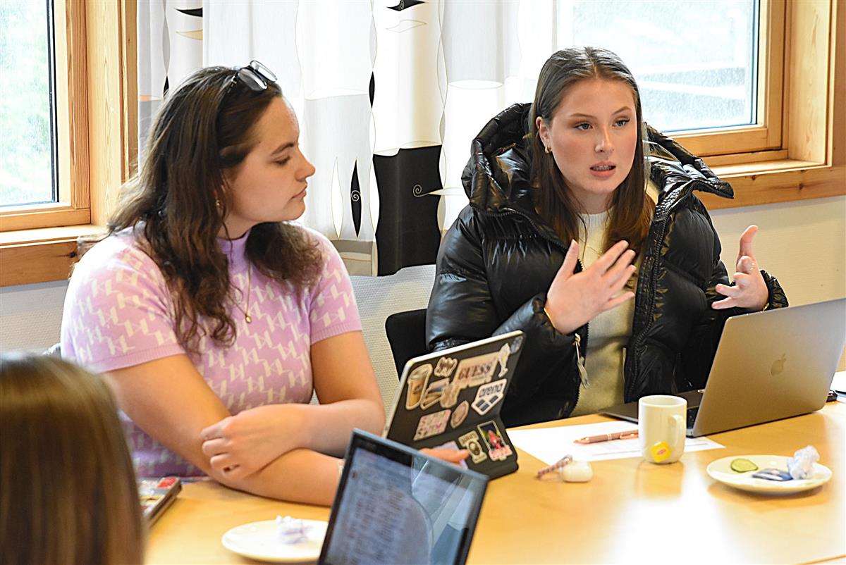 Frå møtet 14. april. Til venstre nestleiar Rebekka Kvaal og til høgre leiar Alva Betine Kilvik.Ungdomsrådet slutta seg til innstillinga frå kommunedirektøren. Dei som får støtte er: