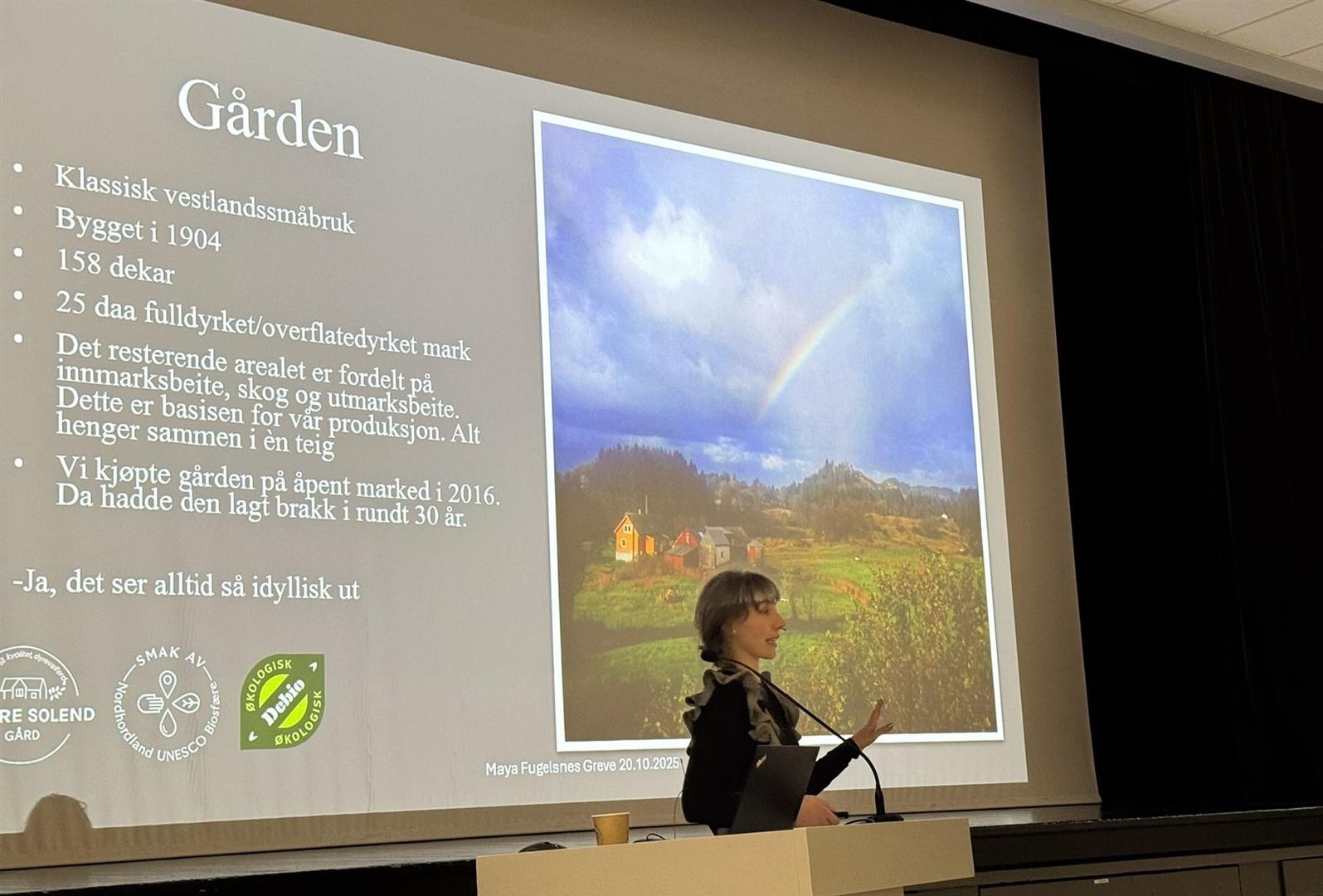 Etter pausen delte Maya Fugelsnes Berg frå Alver historia om å byggja opp garden Nordre Solend. Ho snakka om å prøva og feila, om å finna sin eigen måte å driva på og kor mykje det betyr å ha gode folk rundt seg.