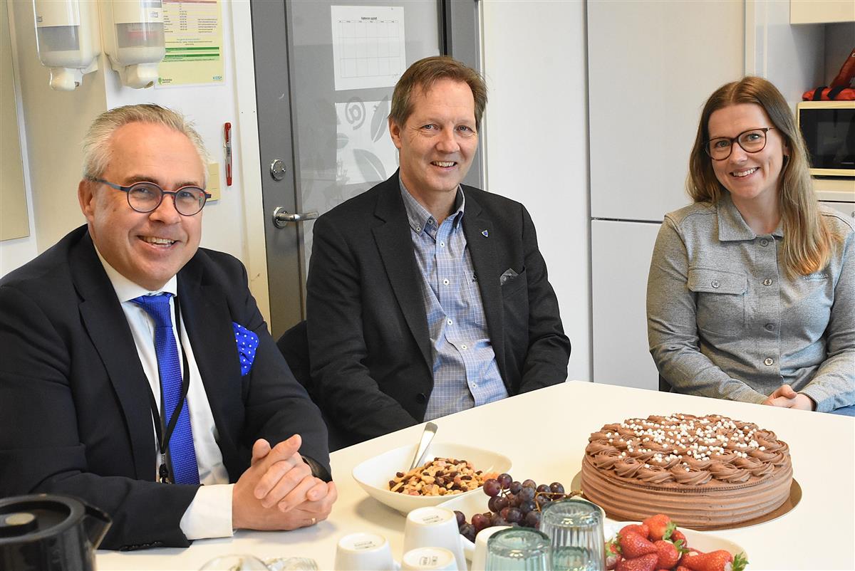 På tysdag besøkte ordførar Tom Georg Indrevik og leiar i levekårsutvalet Ernst Einarsen barnehagen og hadde med kake for å ha ei lita markering av at barnehagen gjorde det godt i foreldreundersøkinga. Barnehagen, som vart etablert i 2019, har fire avdelingar med 55 barn (80 ekvivalentar).