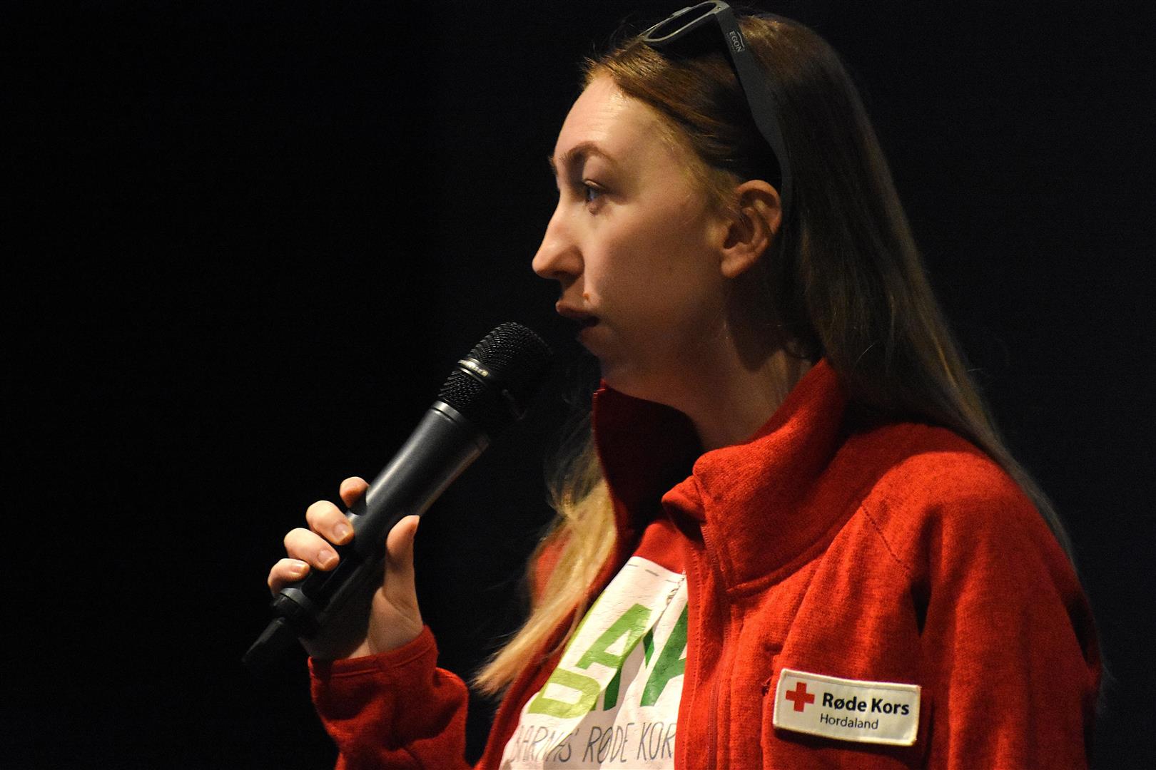 Rolf ØvretveitPå samlinga i kinosalen orienterte barne- og ungdomsleiarlinja på Sotra vidaregåande skule om korleis dei arbeider med dette temaet. Ei av dei var Maria Baardsen som går andreåret.