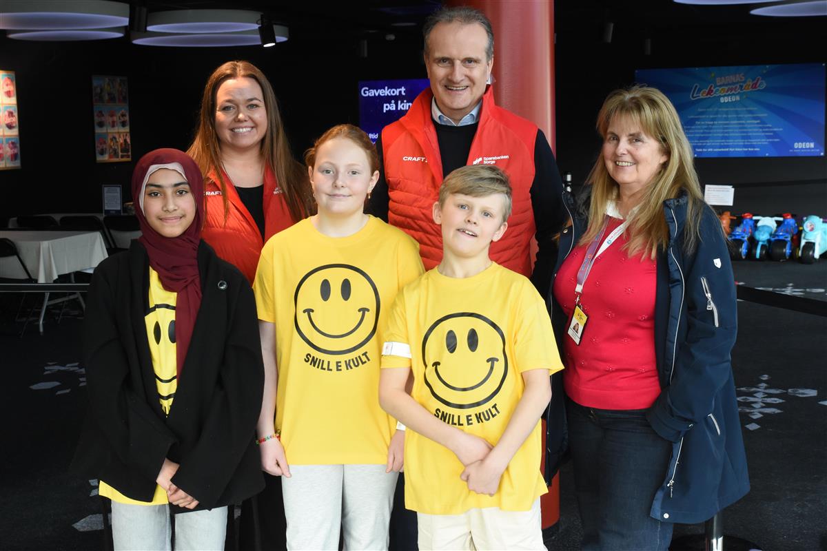 Frå venstre; Manha Rashid, Camilla Nygård, Emma Martinussen, Rune Straume, Liam Olsen Kaland og Anita Garlid Johannessen (varaordførar).Rolf Øvretveit er tydeleg på at dette prosjektet var heilt avhengig av bidraget frå Sparebanken Norge. Seniorrådgjevar Rune Straume og banksjef Camilla Nygård var på plass og overrekte ein symbolsk sjekk.