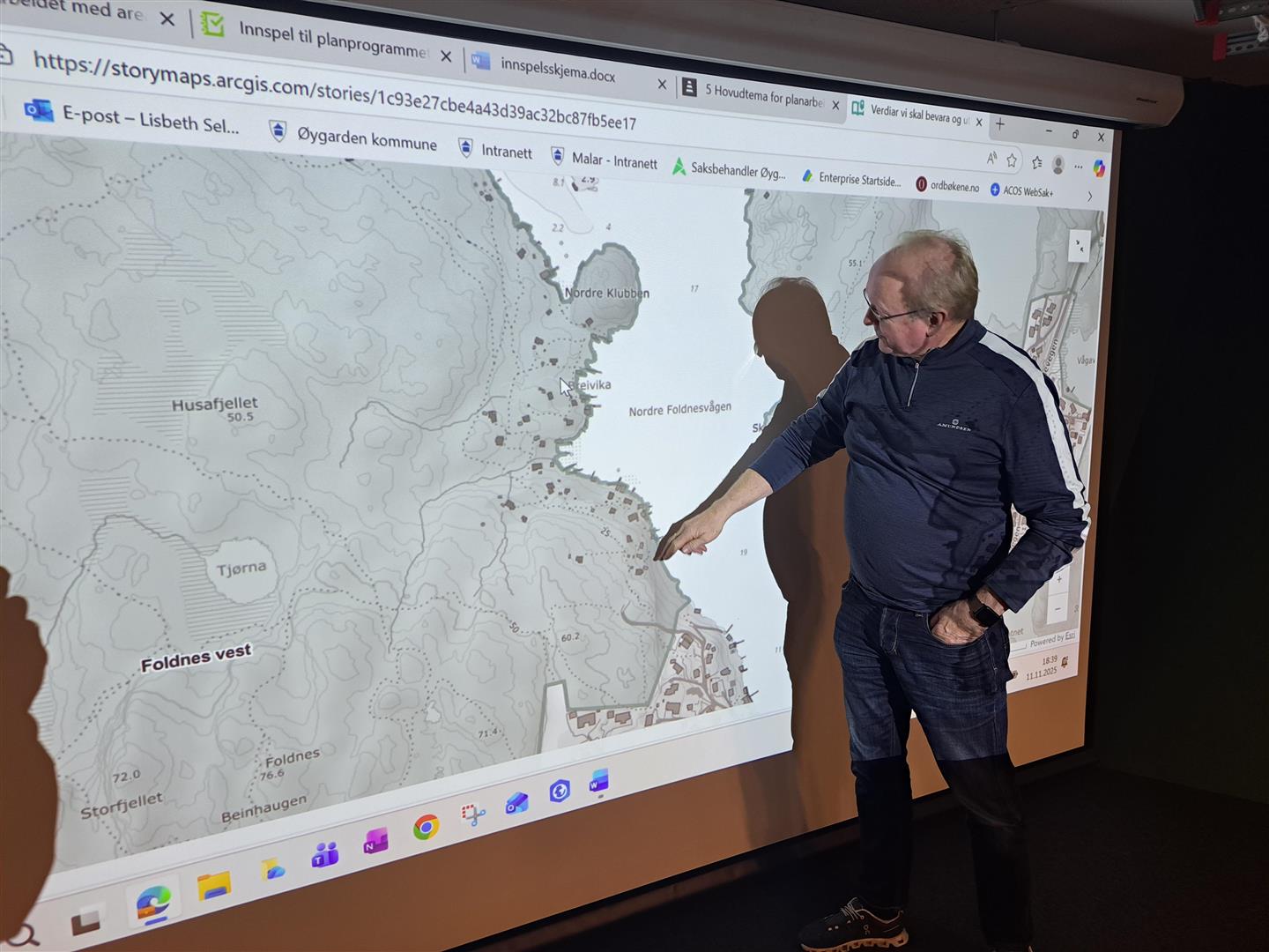 I innleiinga av møtet orienterte samfunnsplanleggjarane i kommunen om prosessen med planprogrammet. Etter at samfunnsdelen til kommuneplanen vart vedteken i 2022 er det etter ein omfattande prosess utarbeidd eit kunnskapsgrunnlag. På grunnlag av kunnskapsgrunnlaget er det laga utkast til strategiar for arealbruk i framtida i Øygarden. I planprogrammet er det også skildring av resten av planprosessen fram til endeleg vedtak i 2027.