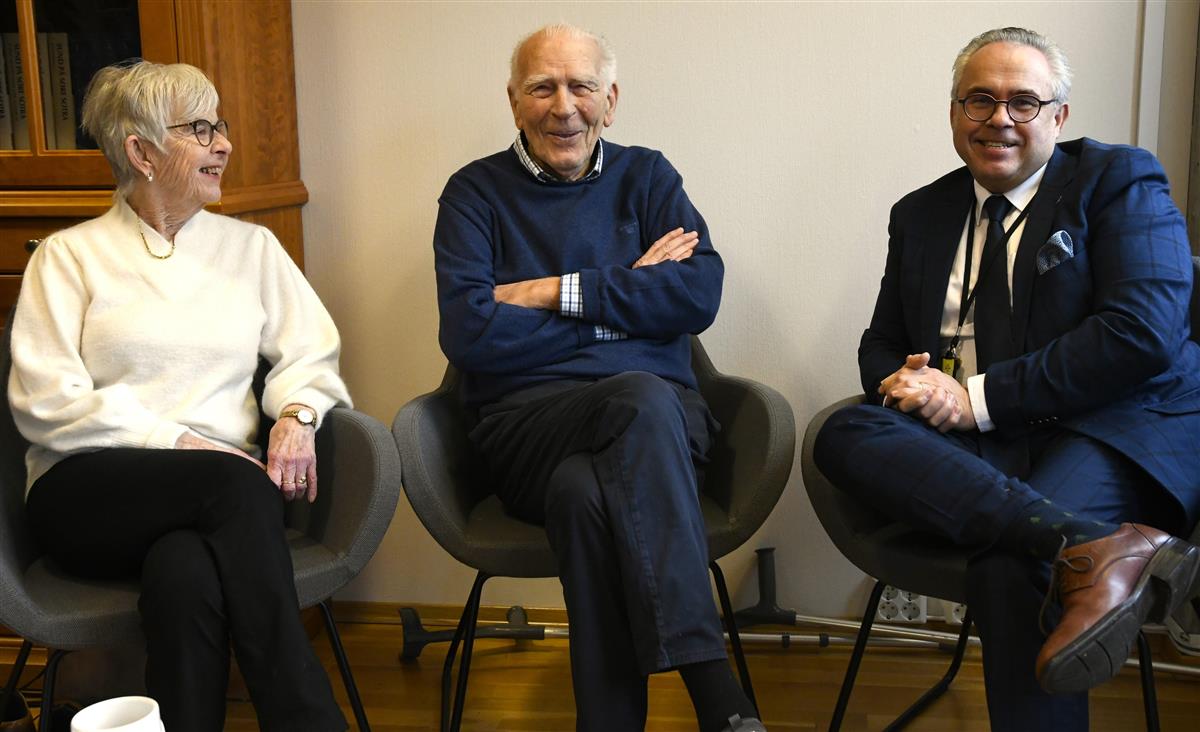 Stemninga var god på ordførarkontoret. Frå venstre; Wigdis Ekerhovd, Ole Konrad Ekerhovd og Tom Georg IndrevikFor mange gode dagar har det blitt på Ole Konrad. Han har eit godt nettverk der han bur heime på Ekrhovda. Kona Wigdis har alltid stått støtt ved sida. Det vart seint mange kveldar etter lange politiske møte.