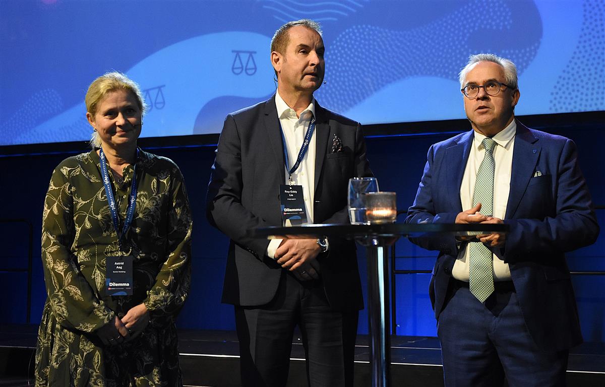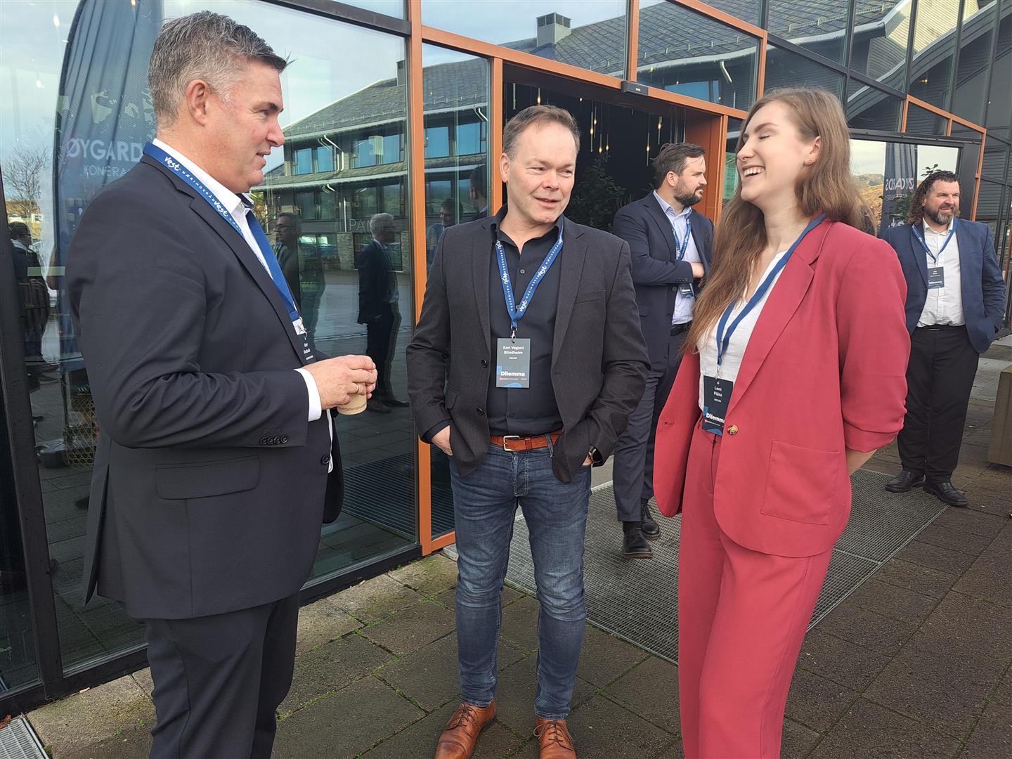 Frå venstre Astrid Aag, Roy-Eddy Lie og Tom Georg IndrevikLytt til podkasten Rådhuset som tok pulsen på Øygardskonferansen. Gjester var Camilla Nygård, Ove Trellevik, Kåre Bjorøy, Gunnar Staalesen og Liv Signe Navarsete.