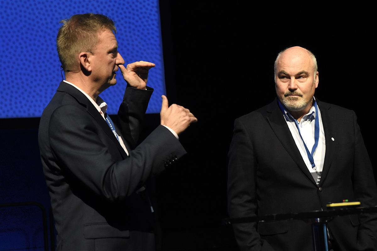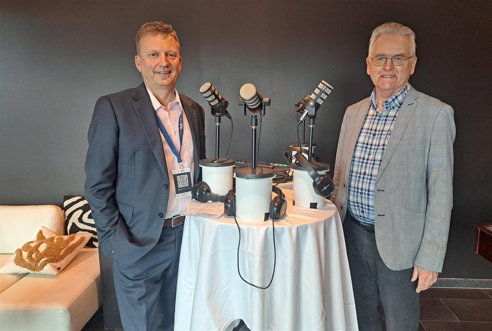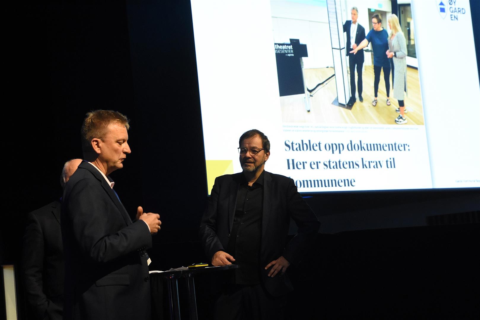 Johnny Breivik (til venstre) og Kåre Bjorøy380 deltakarar slår alle rekordar for Øygardskonferansen. Fleire av dei vi snakka med peika på at kvaliteten på Øygardskonferansen har vorte stadig høgare.