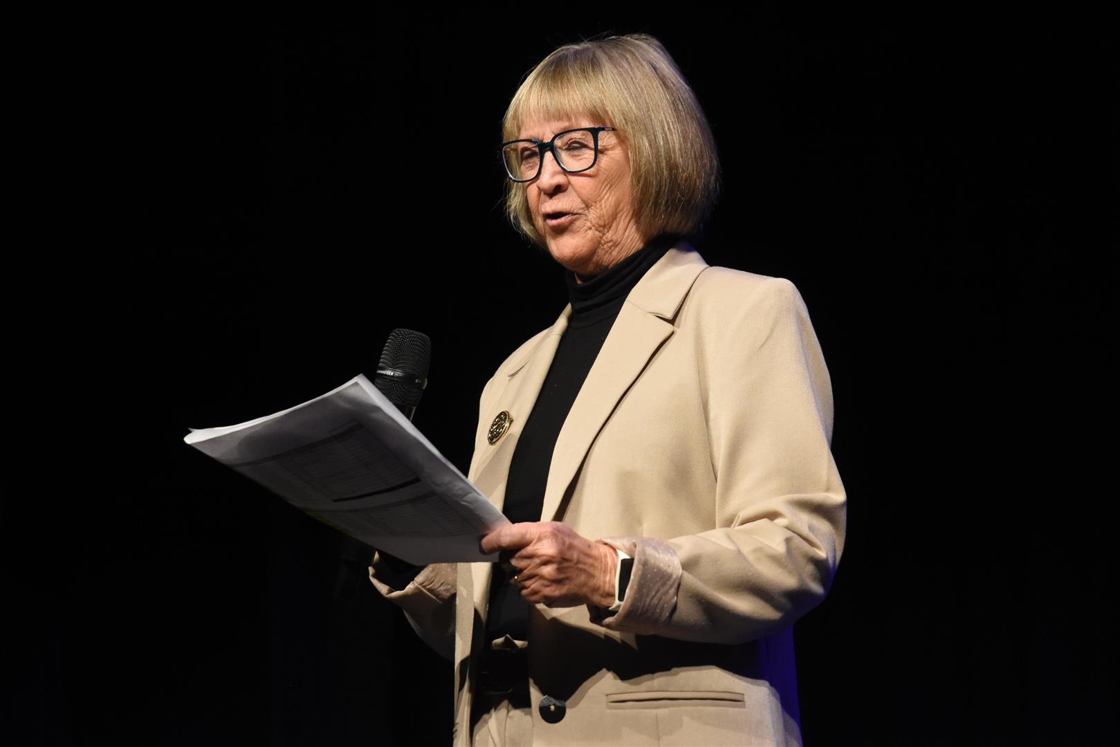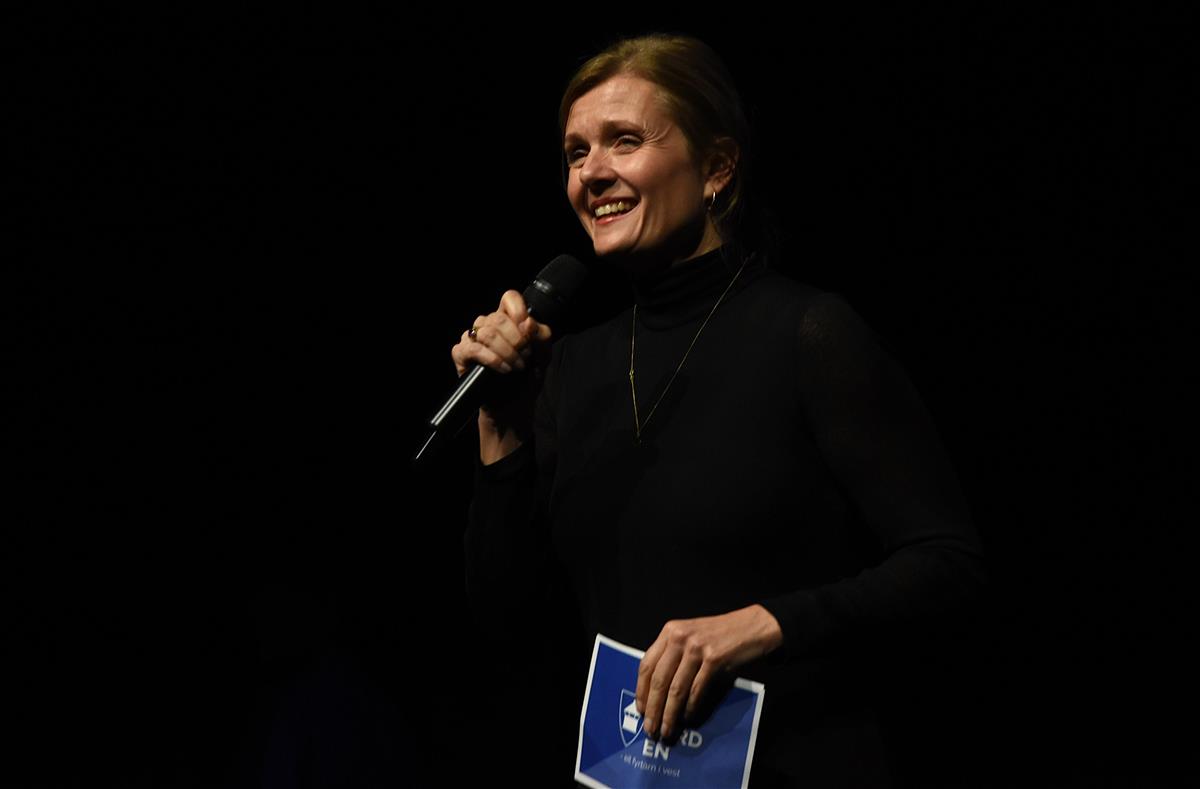 Kultursjef Marian Guddal Hansen var engasjert og stolt der ho stod framfor publikum fredag kveld.