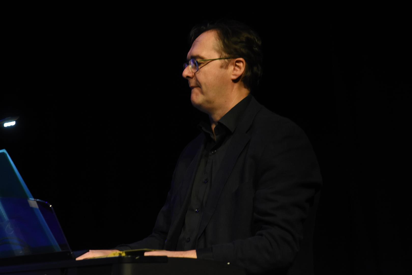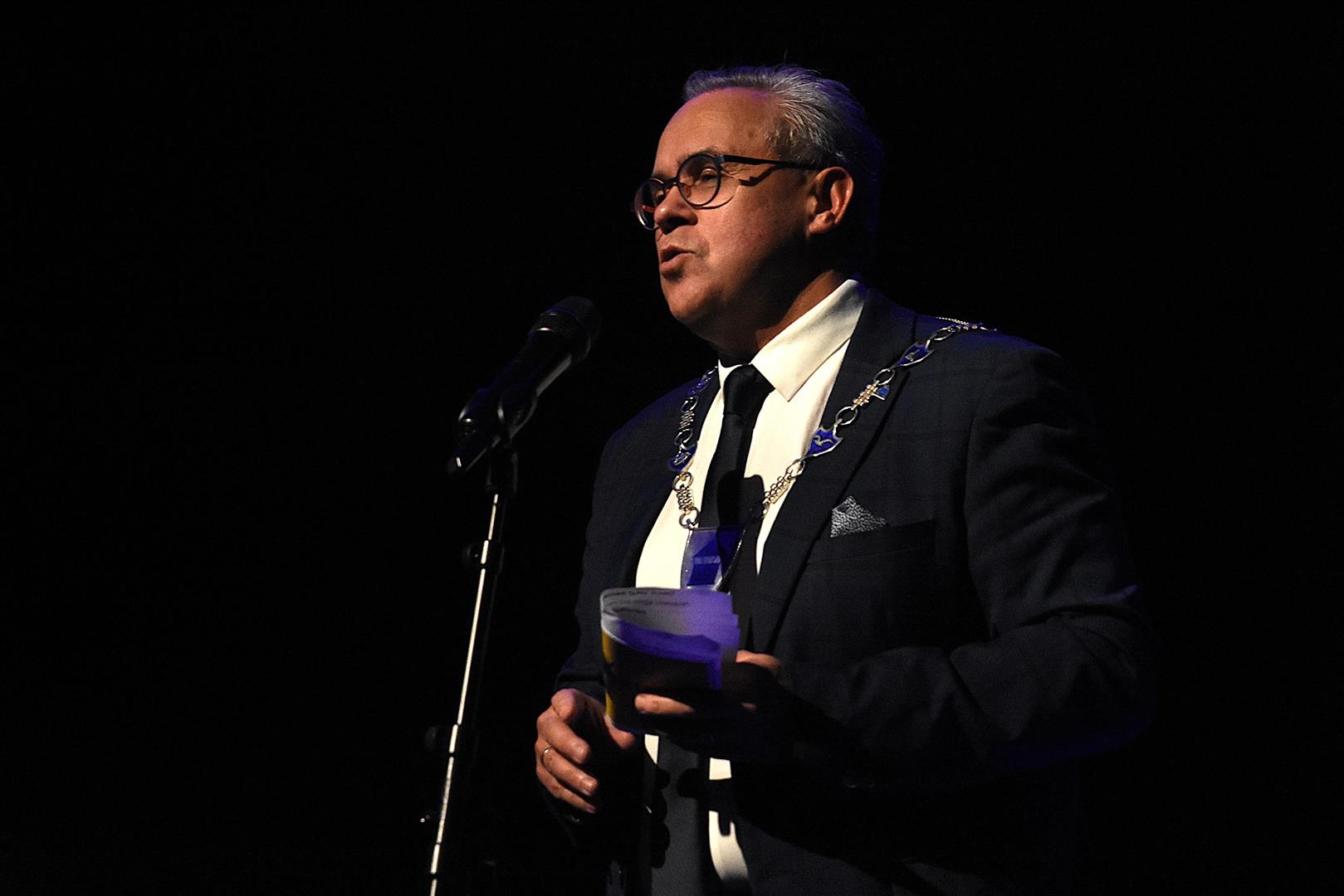 Dagleg leiar i amatørkulturrådet i Bergen og styremedlem i Vestland kulturåd, Geir Eikenes, helsa til jubilanten frå Vestland kulturråd.