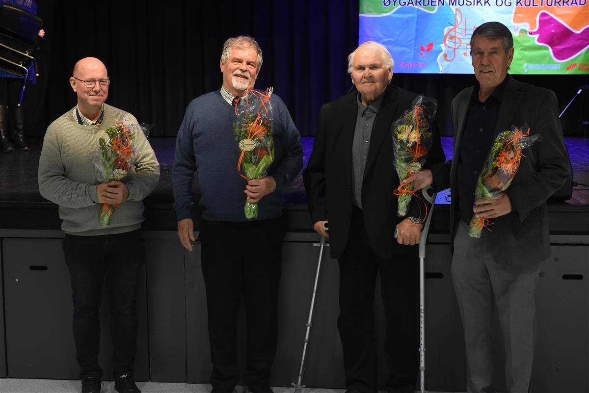 Tidlegare leiarar i rådet. Frå venstre; Ivar Einarsen, Roger Martin (sekretær), Svein Lie og Eivind Helland. Andre som har vore leiar, men som ikkje var til stades denne kvelden er Hans Olav Fjell, Stig Ludvigsen, Asbjørn Halsebakke, Terje Thomassen og noverande leiar Oddvar Rebnord.Korleis var det for 40 år sidan?