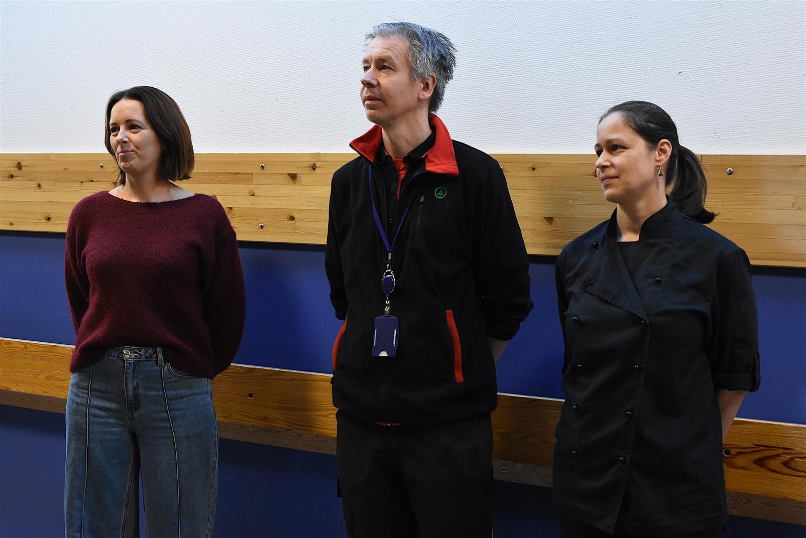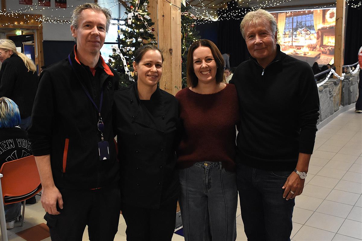 Frå venstre; Dan Solsvik (Spar), Mandy Goldmann (Huset Spiseri), Marita Torsvik Solås (senterleiar) og Alfred Instefjord (Øygarden ungdomsskule).Også avdelingsleiar Ingrid Algrøy Sæle har registrert ei stor endring i oppførselen til elevane.