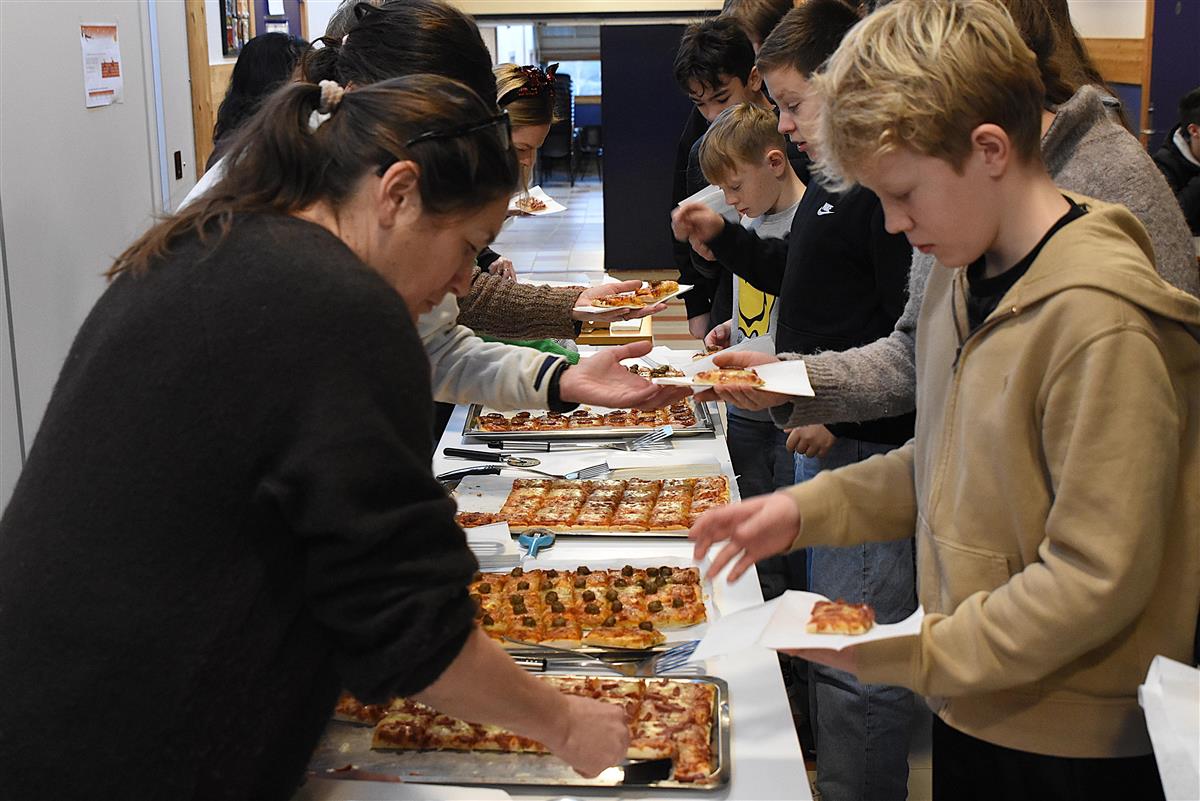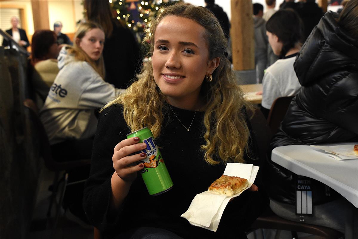 Det var Huset Spiseri som leverte pizza til elevane. Kiwi sponsa brusen.