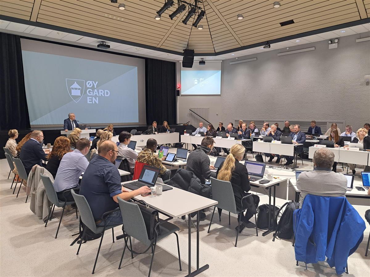Arkivfoto. Frå møetet i kommunestyret 21. oktober i år.Formannskapet behandlar saka tysdag 9. desember.