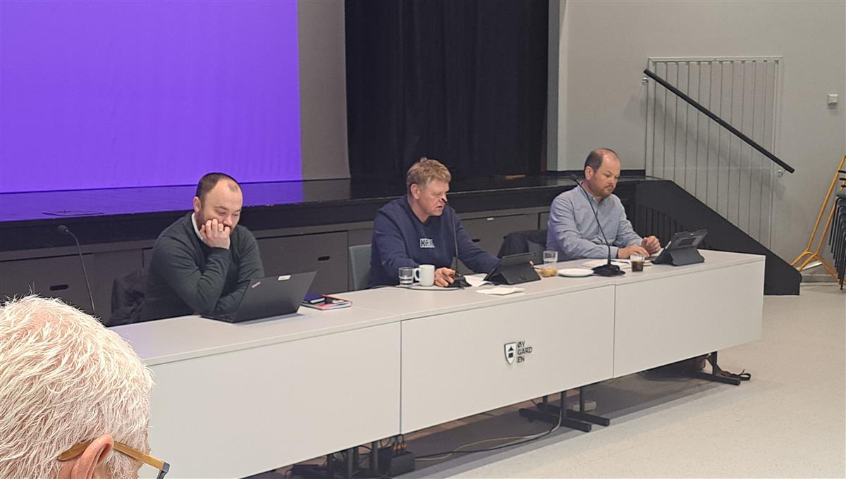 Frå møtet i levekårsutvalet på onsdag. Frå venstre; kommunalsjef for Oppvekst Marius Sylta, nestleiar i utvalet Helge Nilsen som leia møtet og setjenestleiar Robert Kaupang Sæle.KrF føreslo å seia nei til utvida skjenking og fekk støtte frå to medlemer frå Høgre, Sotralista, Sp og INP (seks medlemer).