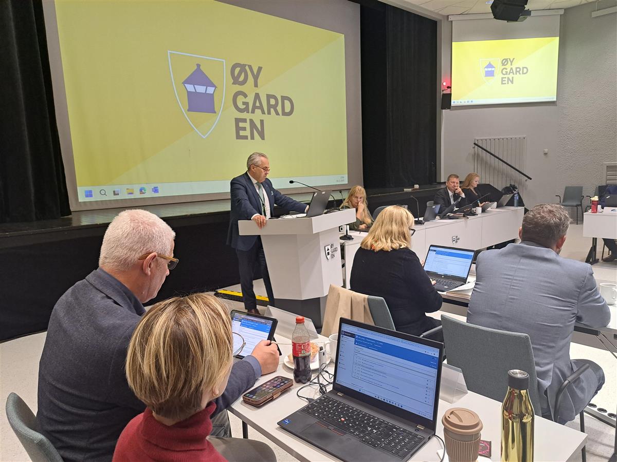 Frå kommunestyremøtet 6. november. På talastolen, ordførar Tom Georg IndrevikI vedtaket heiter det vidare at administrasjonen skal gjennomføra nabolagsarbeid før søknad om plassering vert sendt. Kommunestyret skal informerast om framdrift og eventuelle utfordringar i arbeidet.