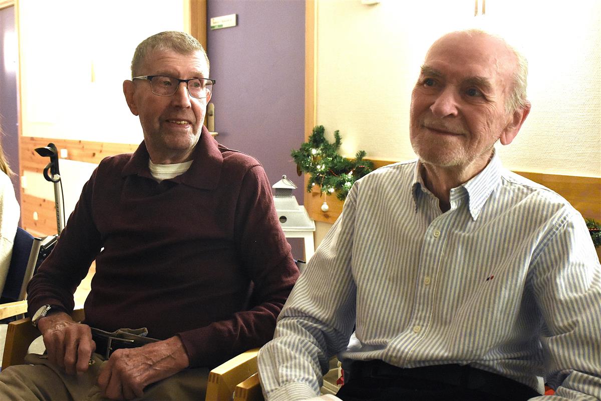 Otto Oen (til venstre) og Johan WolffVaraordførar Anita Garlid Johannessen fekk også oppleva opninga av julebyen på omsorgssenteret.