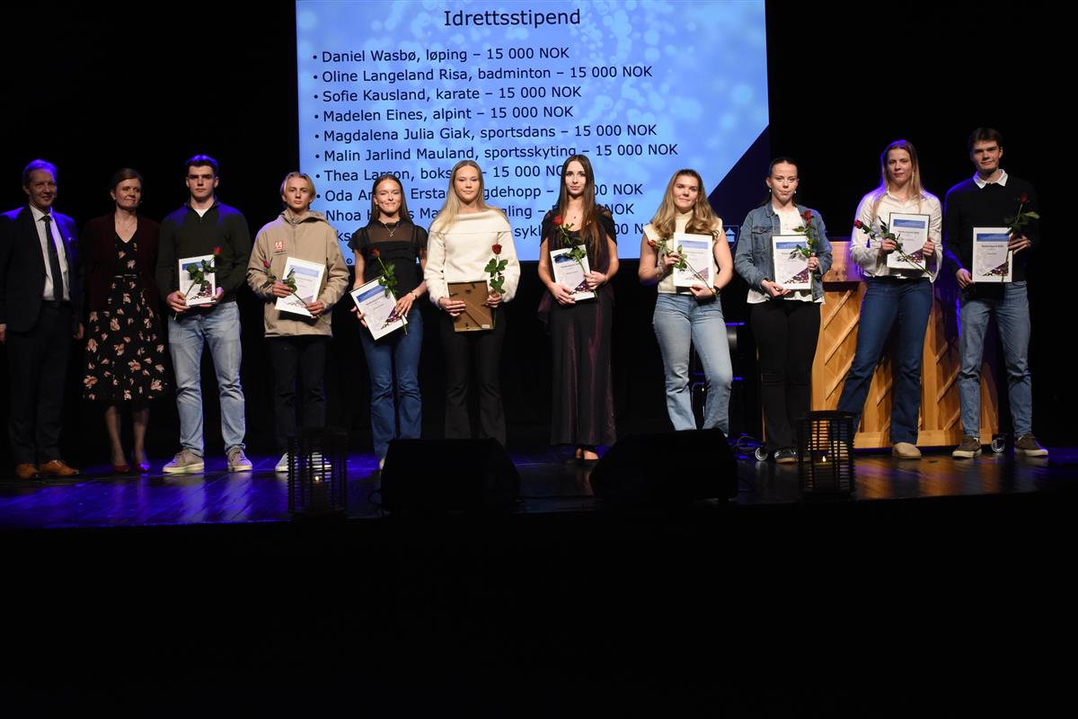 Desse fekk idrettsstipendPå samlinga vart det også delt ut heider til kultur, idrett, idrettsstipend/kulturstipend. Ei gruppe frå Rong Brass sytte for at arrangementet hadde ei flott musikalsk ramme. Innimellom prisutdelingane var det ei rekkje underhaldningsbidrag som viser dei breie organisasjons- og kulturlivet i kommunen.