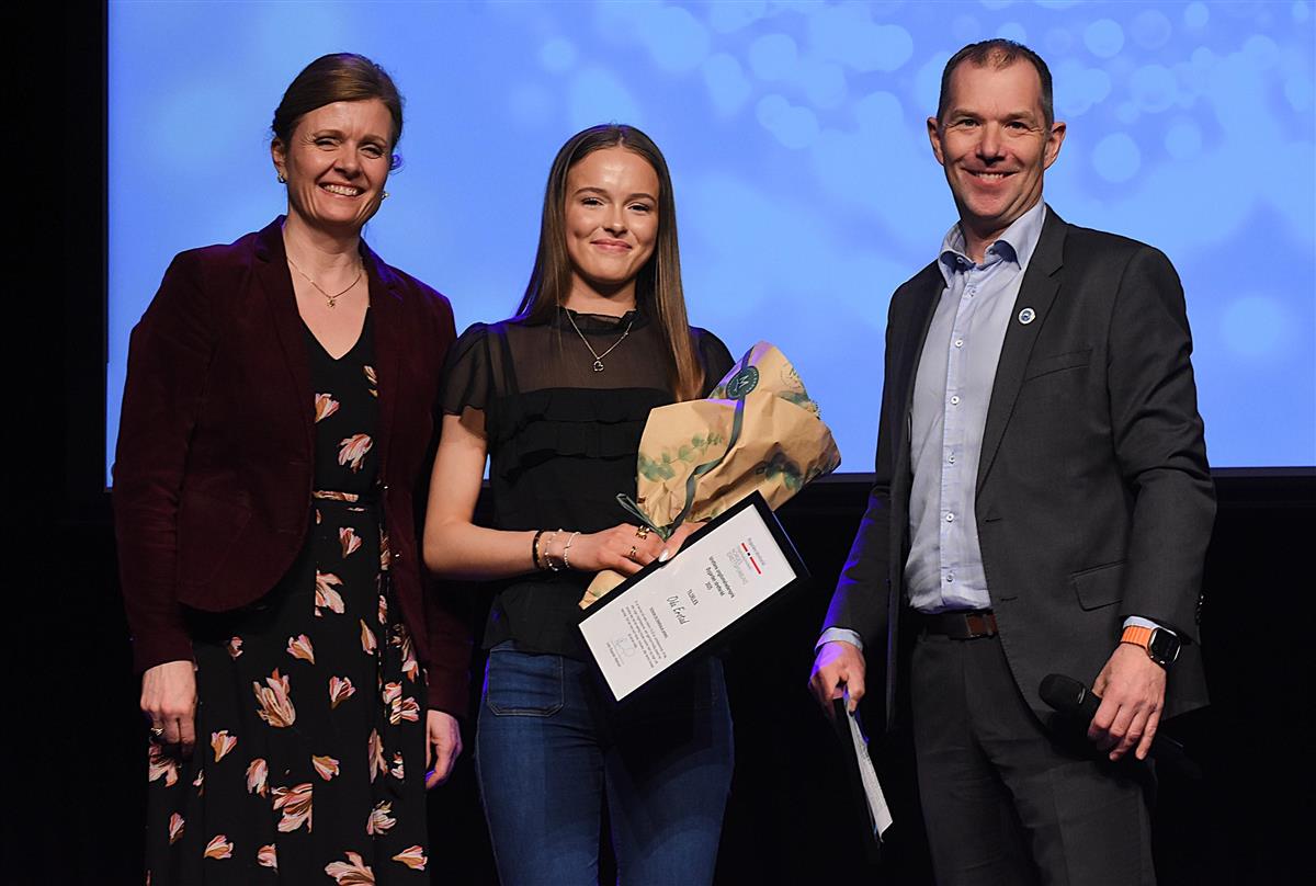 Heiderprisen frå idrettsrådet gjekk til Oda Erstad. Til venstre; kultursjef Marian Guddal Hansen og til høgre; leiar i idrettsrådet Sturle HallerakerUngdomsprisen til idrettsrådet gjekk til Oda Erstad som er medlem i Skogsvåg idrettslag og som driv med friidrett. Ho har drive med friidrett i fem år. Ho gler seg over at fleire og fleire er med på friidrett. Ho hjelper også til med å trena dei som er yngre enn henne.