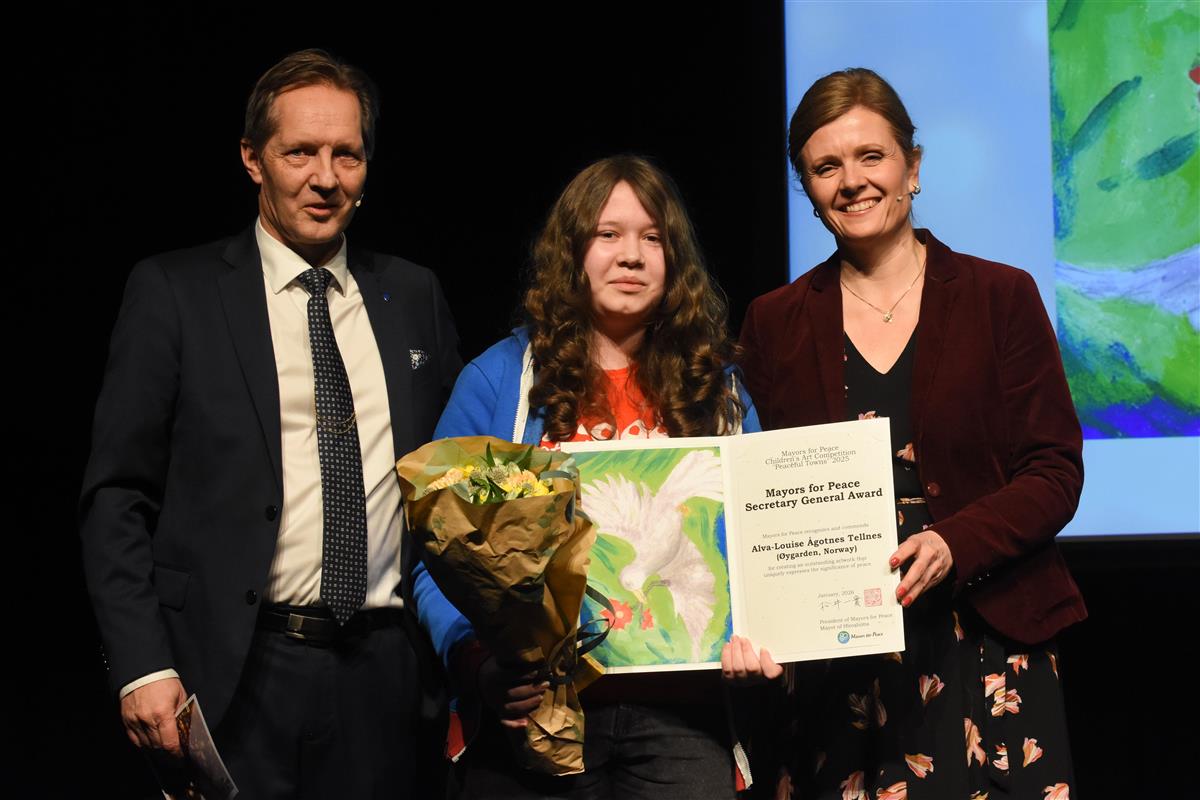 Alva-Louise Ågotnes Tellnes var ein av vinnarane av kunstkonkurransen i regi av Mayors for PeaceDet frivillige arbeidet lever