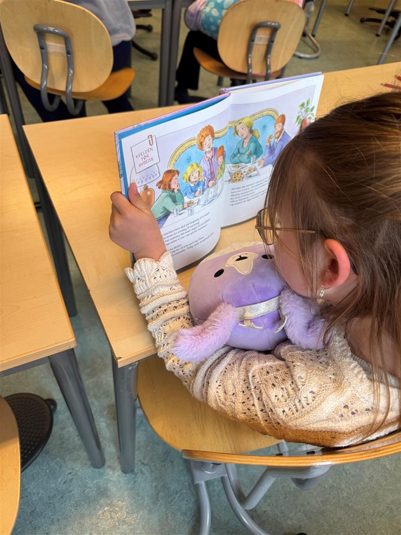 Frå lesevekaTorsdag var det lesekosedag. Her hadde kvar klasse fokus på å kosa seg med lesing. Nokre klassar las for kosedyr, nokon kosa seg med å lesa under pulten, ute på gangen og alle andre stadar der det var mogeleg å lesa.