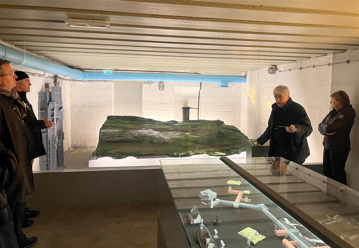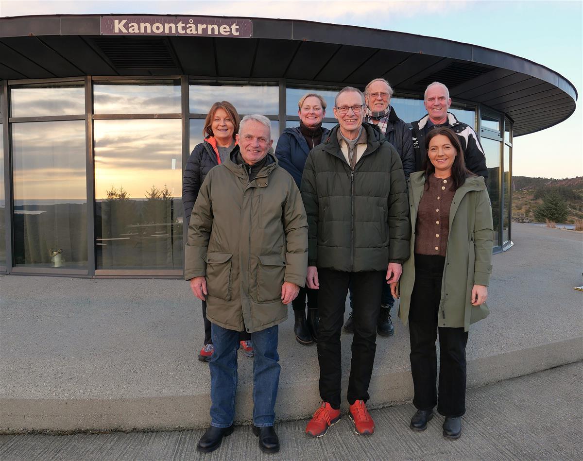 Ole Hovland (nr. tre frå venstre) gav orientering på omvisinga.Det nye styret fekk på onsdag ei grundig omvising i festningsanlegget av stadansvarleg Ole Hovland, som saman med andre frivillige legg ned eit stort arbeid for å ta vare på og formidla kulturminna på Fjell festning.