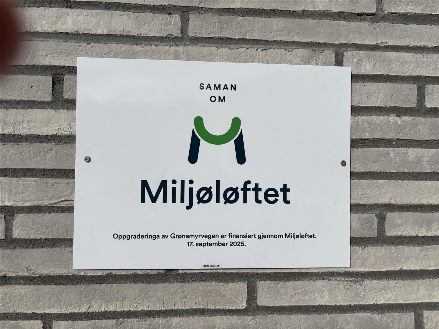 Prosjektet sentrumsgate Grønamyrvegen er altså finansiert gjennom Miljøløftet. Formålet er å oppgradera gata til gatestruktur med større fokus på gåande og syklande.