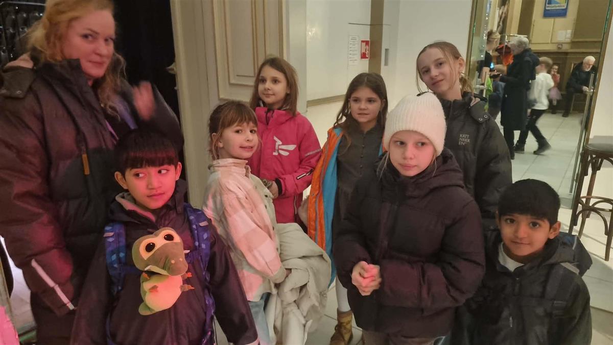 Frå teaterbesøketDet vart ein lang dag for både elevane og lærarane Victoria Mickevice og Berit Selvik. Elevane vart henta av lærarane på SFO, og vi tok buss heilt til Bergen.