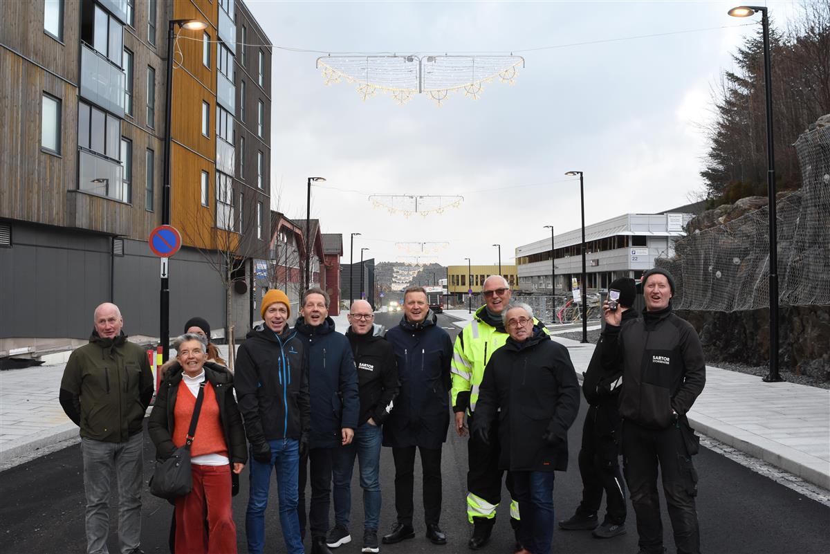 Kommuneleiinga og senteret ville gjerne at lysa kom på ved inngangen til advent.Formålet med sentrumsgate Grønamyrvegen er å oppgradera gata til gatestruktur med større fokus på gåande og syklande. Den oppgraderte gata vart offisielt opna 17. september.