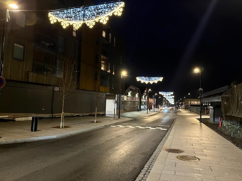 Julegata fredag kveldProsjektleiar for Miljøløfte-prosjektet sentrumsgate Grønamyrvegen, Andreas Kårbø, seier at lysa vil stå på fram til andre helga i januar.