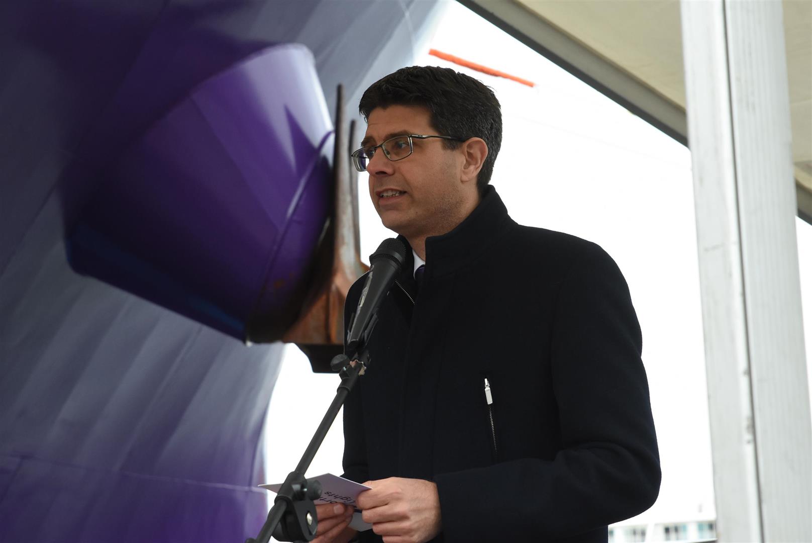 Også fylkesvaraordførar Stian Jean Opedal Davies talte på skipsdåpen.
