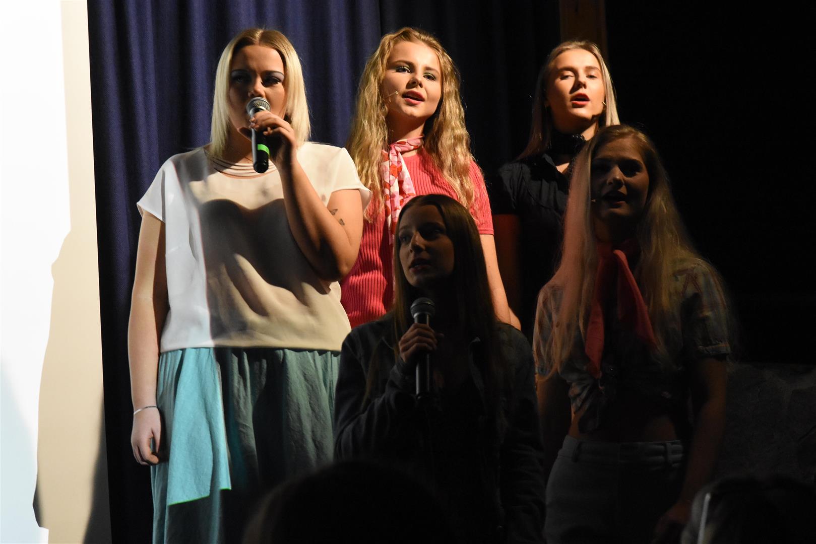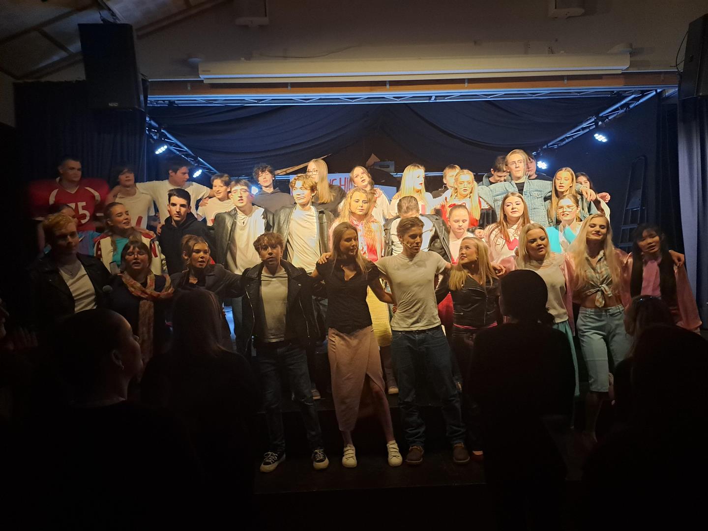 Danny (Ludvig Landro) og Sandy (Emine Kleppestø Thorbjørnsen) hadde hovudrollene.Den replikken var det nok mange som fekk med seg etter at publikum hadde gledd seg stort over 49 dyktige og engasjerte 10.-klassingar i den ein og ein halv time lange framsyninga med song, musikk, dans og drama.
