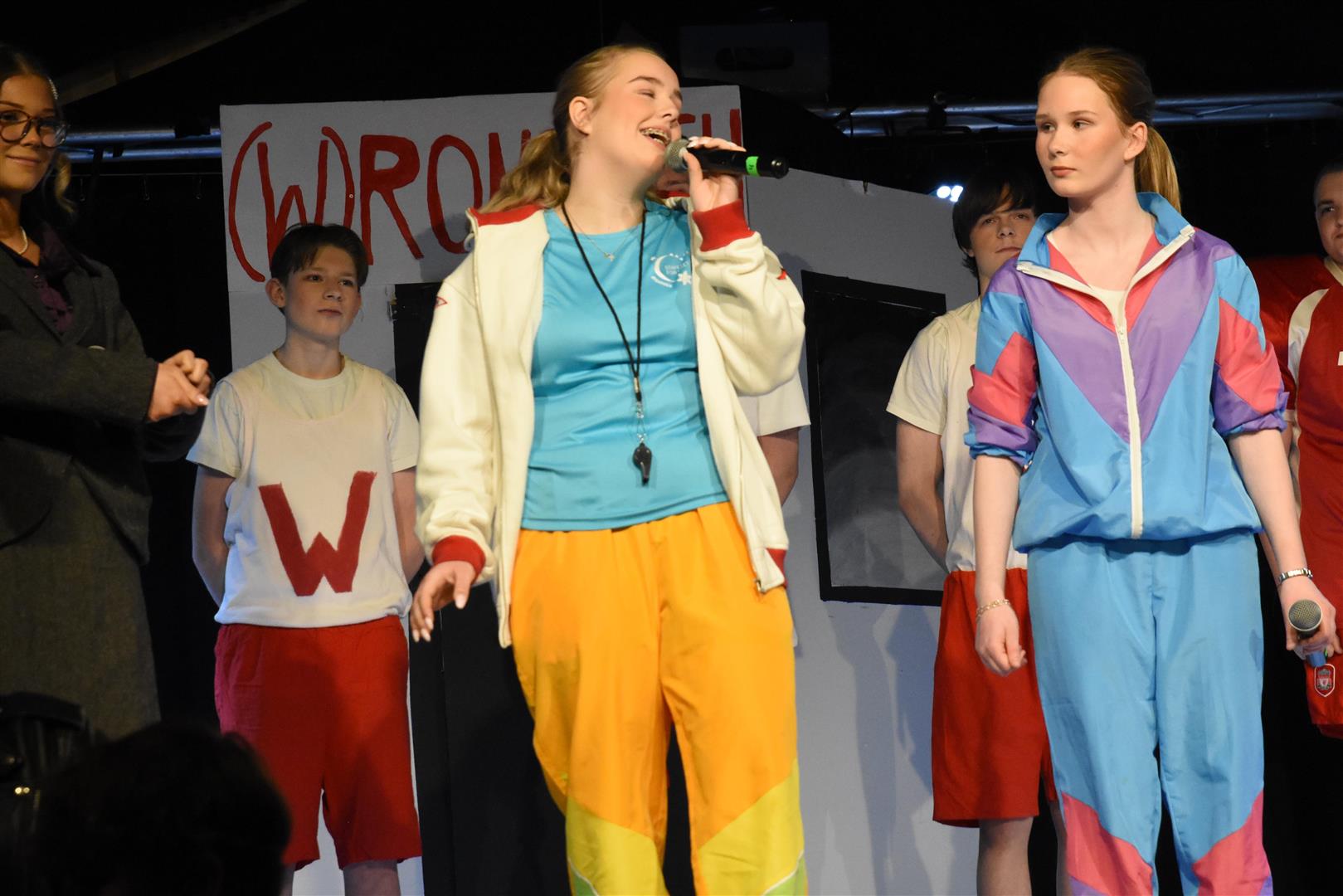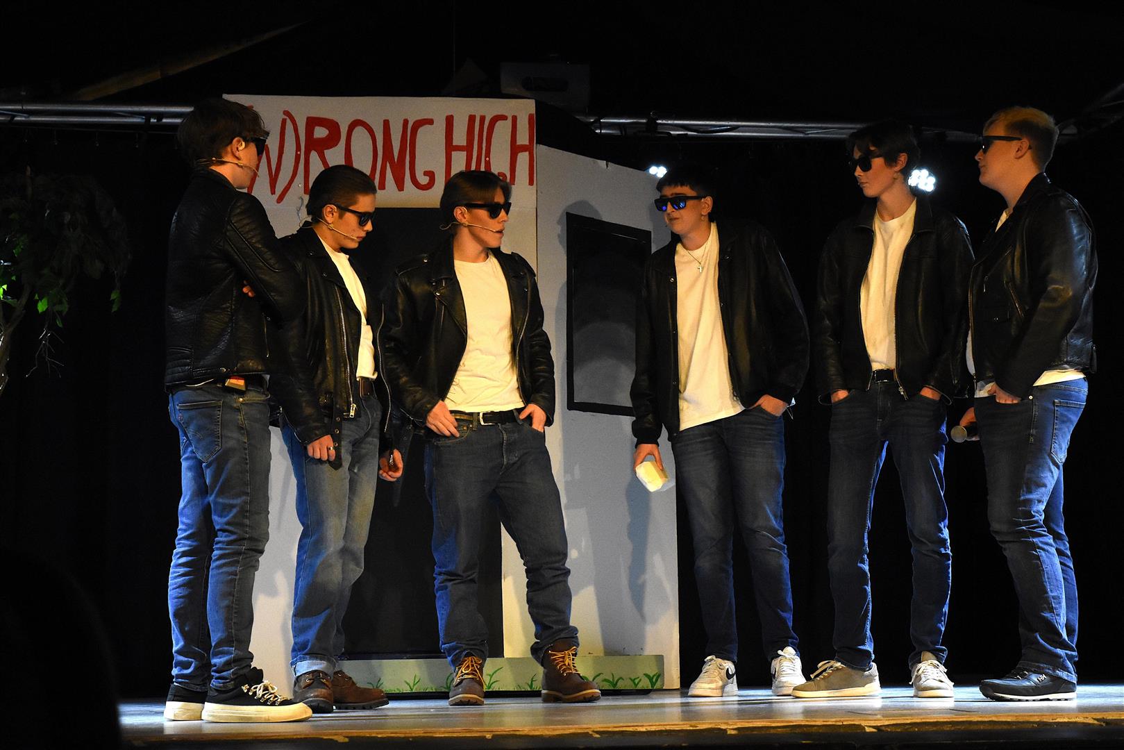 Grease er ein musikal frå 1978 med handling frå slutten av 50-talet. Sandy (Emine Kleppestø Thorbjørnsen) og Danny (Ludvig Landro) har hovudrollene som to ungdomar som vert forelska i kvarandre på stranda i sommarferien. Men ting har endra seg når skulen (High Rong) startar etter ferien. Det er ikkje så enkelt for den snille Sandy og «greasaren» Danny med lerjakke å finna ut av det. Men med amerikansk slutt, er alt vel….