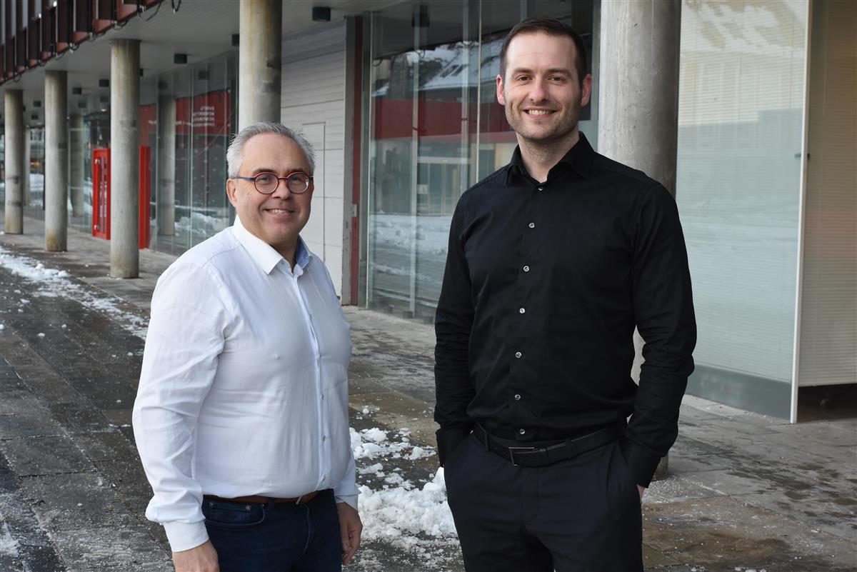 Ordførar i Øygarden, Tom Georg Indrevik (til venstre) og byråd for finans i Bergen, Eirik Tenfjord.
