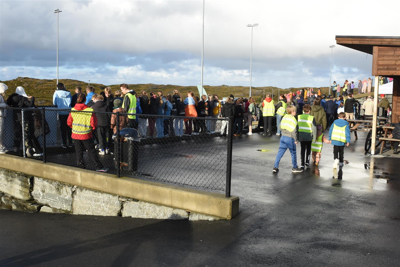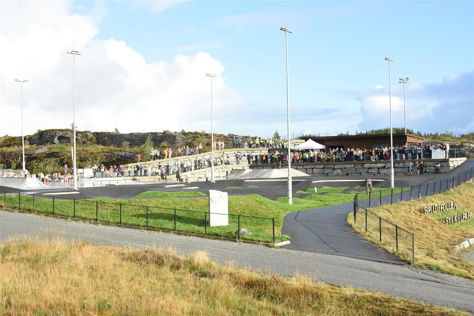 Med alle elevane på Spildepollen skule og barna frå Spildepollen kystbarnehage var det ei perfekt ramme for sykkelshow på Spildepollen skule på onsdag. Det var leiar i plan- og miljøutvalet, Børge Haugetun, som sparka det heile i gang.