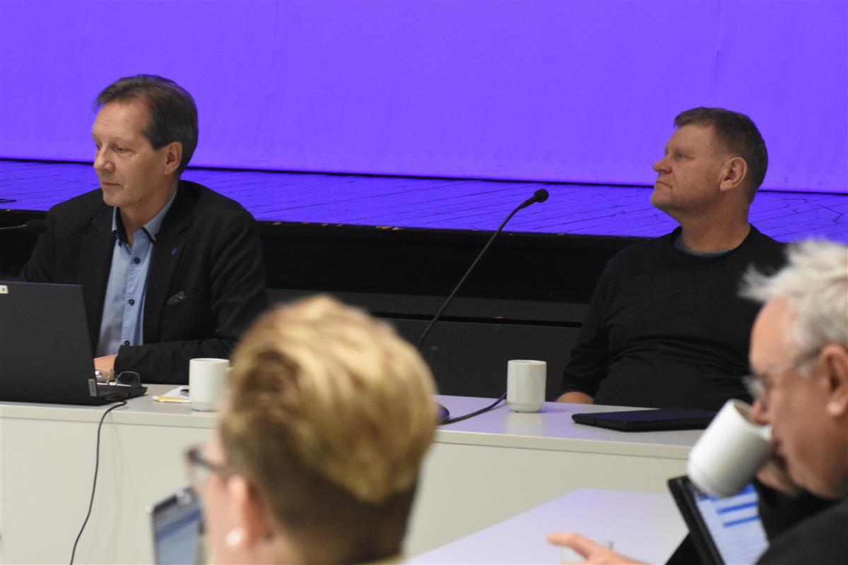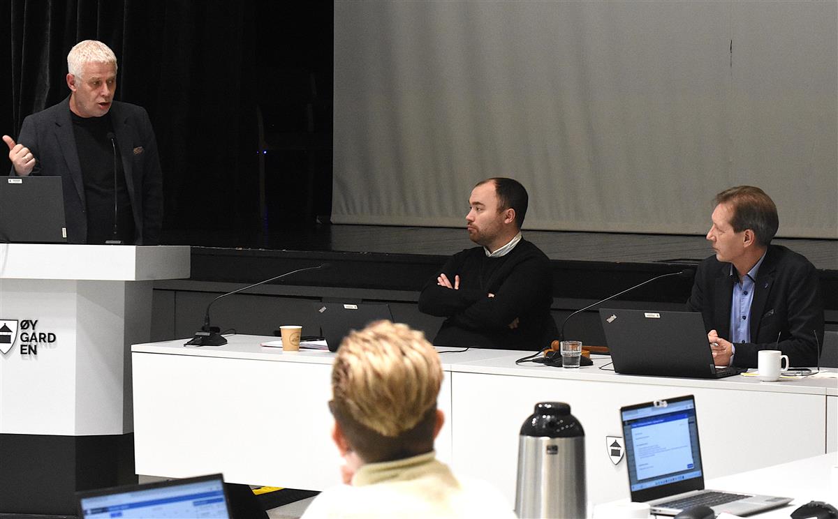 Frå møtet i levekårsutvalet onsdag. På talarstolen Espen Cornell Jacobsen (Ap). Vidare frå venstre; kommunalsjef for Oppvekst Marius Sylta og leiar i utvalet, Ernst Einarsen (H). Biletet er frå drøftinga om ny skule på vestsida.Levekårsutvalet var samla til møte onsdag ettermiddag.