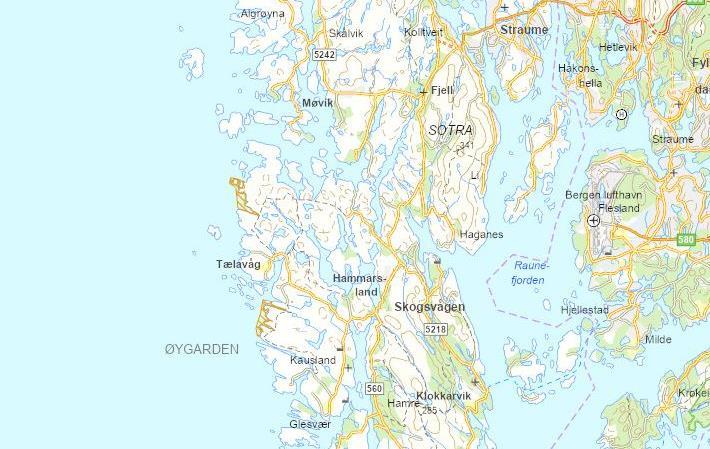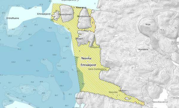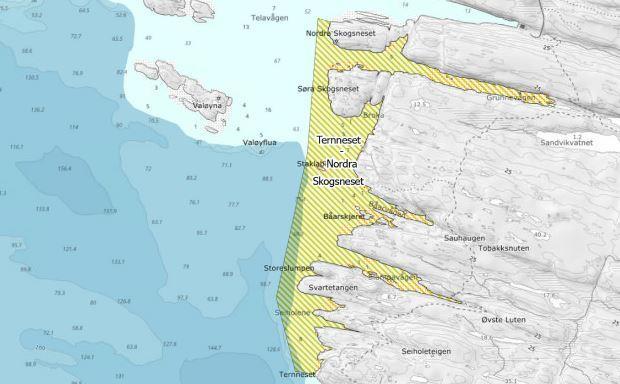 Gule område i kartet vert endra til raudt når forskrifta trer i kraft 1. oktoberDei nye områda i Øygarden ligg sør og nord for Tælavåg. Områda er Nesvika/Ertnsskjeret og Ternneset/Nordra Skogsneset.