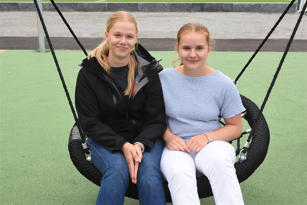 MOTivatorane Nina Kalgraff Håkonsund og Ida Sofie Rokkan (begge klasse 10c) gler seg også over det nye uteområdet.