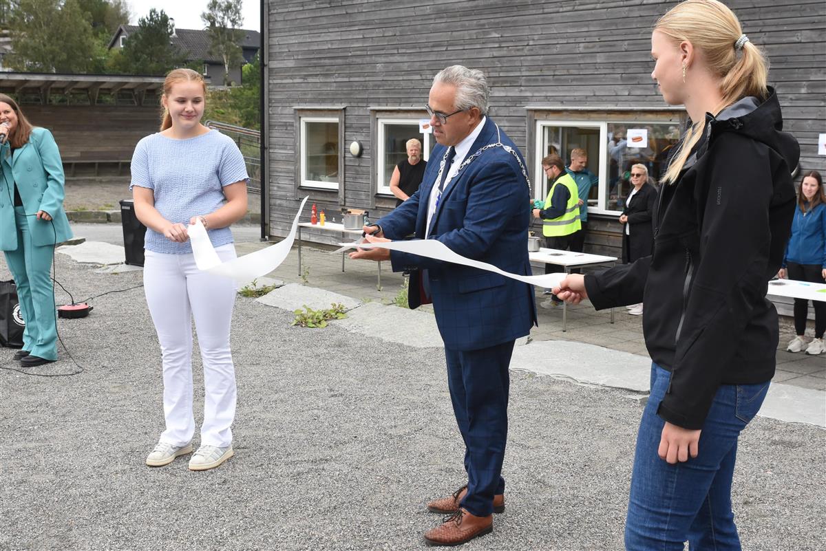 Uteområdet er romsleg og gjev plass til mange aktivitetar.Det var ordførar Tom Georg Indrevik som klipte snora og erklærte det nye uteområdet for offisielt opna.