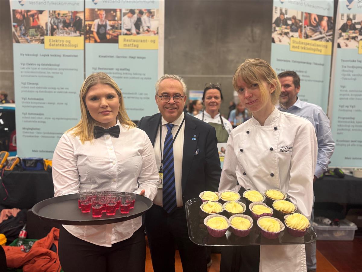 Ordføraren fann òg fram til restaurant- og matfagstanden og fekk smaka på eigne produkt som elevar serverte. Faget gjev moglegheiter både innan restaurant, catering og matproduksjon – og er populært blant dei som ønskjer ein praktisk og kreativ kvardag.