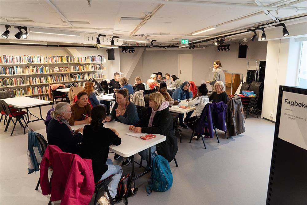 Vi formidlar litteratur, kunnskap, kultur og opplevingar - og vi hjelper deg med å finna fram i dei kommunale tenestene. Hjå oss kan du låna bøker og anna, studera, jobba, lesa aviser, vera med på ulike aktivitetar og kulturarrangement, og mykje meir. Lurar du på noko? Vi er her for å hjelpa deg!