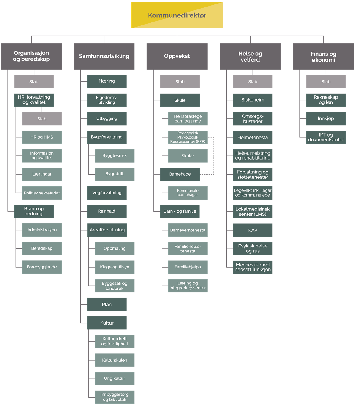 Organisasjonkart og kontaktinformasjon for tenesteområda
