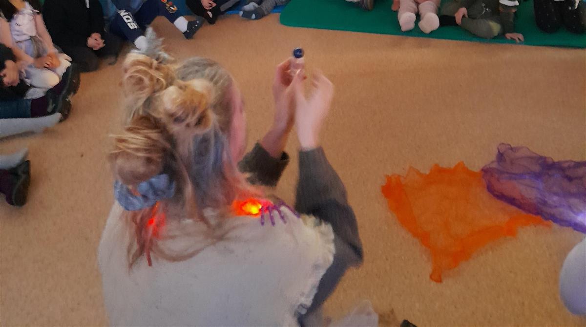 Innleiingsvis til samlinga fekk vi sjå eit dramforløp om tollet som hadde mista lattaren sin. Borna følgde spent med. Trollet måtte besøkje ekornet og høyre om ho hadde sett lattaren til trollet. Det hadde ho ikkje, men trollet fekk ein kongle han kunne spise og sjå om lattaren kom tilbake. Det hjalp ikkje, derfor gjekk trollet vidare til dammen kor trollet møtte frosken. Trollet ville sjå i froskedammen og der plaska trollet i dammen så vatnet spruta og han fann igjen lattaren sin. Alle barna lo godt da trollet spruta vatn på dei.
