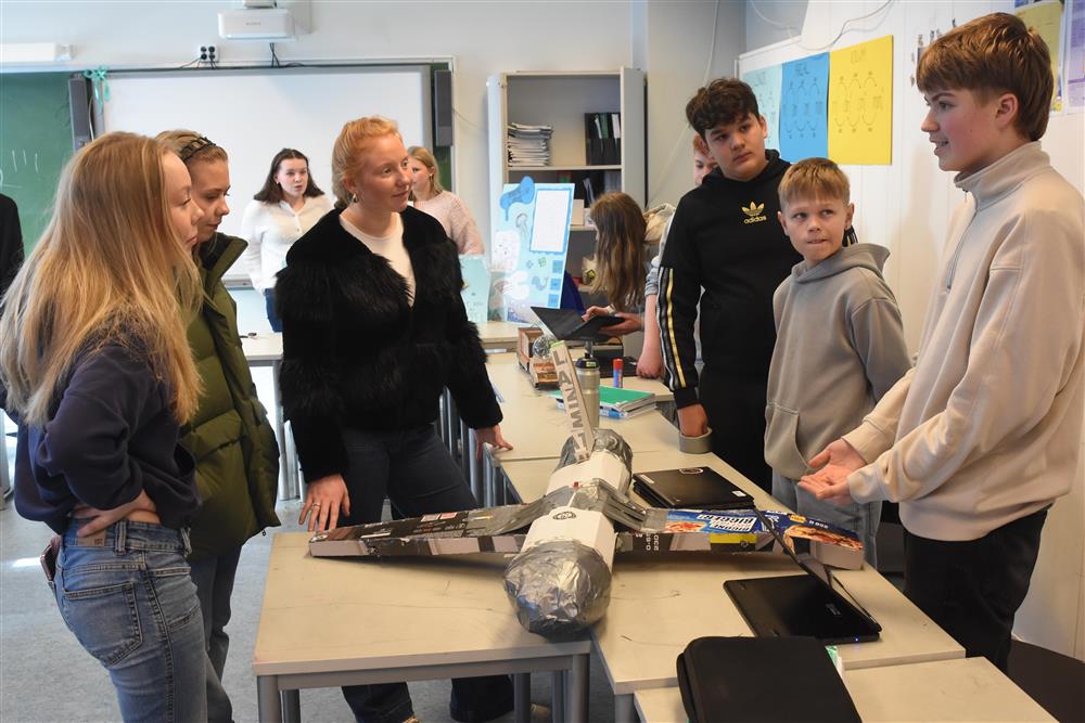 Lærar Bueie Dalin sette seg inn i alle elevarbeida og gjekk rundt til alle elevane og fekk orientering om prosjekta.Mykje mat vert kasta